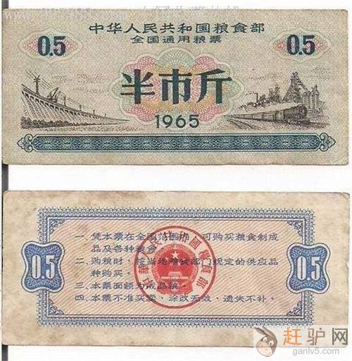 1966年版的她,样本鲜见。关于该年版票的诞生,普遍的观点是因为1965年版粮票背面使用说明中第四条“本票不准买卖、涂改无效、遗失不补赶_驴_网。”的第一个顿号标错了,为了维护国票的形象,粮食部于1967年10月13日发出(67)粮农字第186号《关于发行1966年新版全国通用粮票的通知》,正式启用了在修正1965年版错误的基础上而增印的1966年版粮票。至于这种说法是否正确,无从考证,不过1965年版成为公开发行的错版粮票道是不争的事实。与1965年版一样,1966年版的全国通用粮票也存在着有水印和无水印两种版别。不同的是半斤和一斤均没有水印版,而五斤这枚因水印图案不同又衍生成大小实心五角星和空心五角星加麦穗两种版别。让人费解的是该套票的实票在现实中存量可谓是天文数字,可票样却难得一见ganlv5.com。特别是无水印版的票样及样本,除了在中国票证网的图库里目睹她的芳容外,市场上鲜有人交流,难道当时没准备发行票样或是在样本的发行时偷工减料了?有水印的1966年版粮票是1973年第四季度投放市场的,而按惯例应该先行发行的样本直至1975年12月才下发各地,是受文革影响,还是另有苦衷?